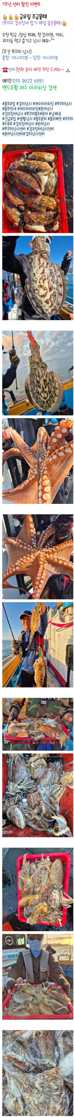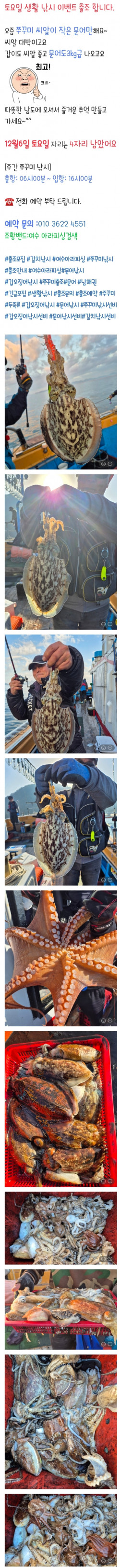 갑이 문어 적당히 섞어서 올라와 주었네요^^1등은 여성분이 하셨네요 축하합니다~^^즐거운 추억 남으셨길 바라고 다들 즐거운 고생 하셨습니다~^^예약19일 일요일 2자리 여유20일 월요일 4자리 여유쭈갑문 선비 이벤트 낚시 나갑니다.낚시대 이벤트도 함께 하니 많은 참여 부탁 드립니다. ✨️쭈꾸미 갑오징어 문어✨️ 전투낚시 출항: 04시30분 ~ 입항: 17시00분 준비 됐습니까~~~ 악! 준비 됏습니까~~~ 악!하나☝️ 선비도 이벤트 중이니 전화로 물어봅니다.하나☝️ 예약도 전화로 합니다.하나☝️ 빠른 예약이 중요 합니다. ✨️낚시대 이벤트 시상✨️최고급 문어낚시대 (????갑오징어 마릿수 1등)????14명이상 신청시 시상 합니다.????일행 몰아주기등 부정행위시 자격 박탈 합니다. 이상정정 당당 대결을 신청하지~~~~~ 밴드조황 : 여수아라피싱 검색예약/문의 : 010 3622 4551#출조모집 #쭈꾸미낚시 #출조안내 #여수아라피싱#문어낚시 #갑오징어낚시 #쭈꾸미출조#문어 #남해권 #긴급모집 #생활낚시 #출조문의/예약 #주꾸미 #두족류 #갑오징어낚시 #문어낚시 #문의 #선비 ⚓️여수 아라피싱호 예약 안내 ⚓️ ⭐️예약문의 : 010-3622-4551 , 010-5629-7913⭐️입금계좌 : 2020.4606.9103 수협 최재성⭐️오시는길 : 전남 여수시 신월1길 32 (네비게이션)⭐️홈페이지 : https://arafishing.sunsang24.com⭐️밴드주소 : https://band.us/band/95591418 ✨예약사이트를 이용하시면 훨씬 빠르고 편합니다✨ 입금시 입금자 성함 필히 문자 남겨주세요‼️입금시 우선 예약확정‼️ ⭐️선사 편의시설음료, 라면(컵라면,한강라면), 생수, 커피(믹스,원두), 차,과자, 제빙기⭐️선사 지급품석식, 야식, 미끼, 7단기둥출, 얼음, 봉돌 ⭐️선사대여품낚시대,쿨러 - 1만원 (아침에 스티로폴 1개 지급)전동릴 - 2만원- 분실 & 파손시 배상- 예약시 미리 말씀해주세요⭐️자리배정- 추첨제로 진행합니다-1번 #1번자리 배정, 2번 #2번자리 배정 순서대로-우선배정단체, 연박하시는 분들 우선배정합니다‼️단체4인이상 손님은 선 배정‼️늦게 오시면 남은 자리에 앉으실수 있습니다⭐️ 갈치 필수준비갈치전용대, 전동릴, 쿨러, 10단기둥줄, 갈치바늘, 집어등, 쪽가위, 칼, 면장갑,구명조끼,신분증저희는 멀미약을 지급하지 않습니다음주를 절대 금합니다‼️올해도 넓게 16석으로 운영합니다‼️